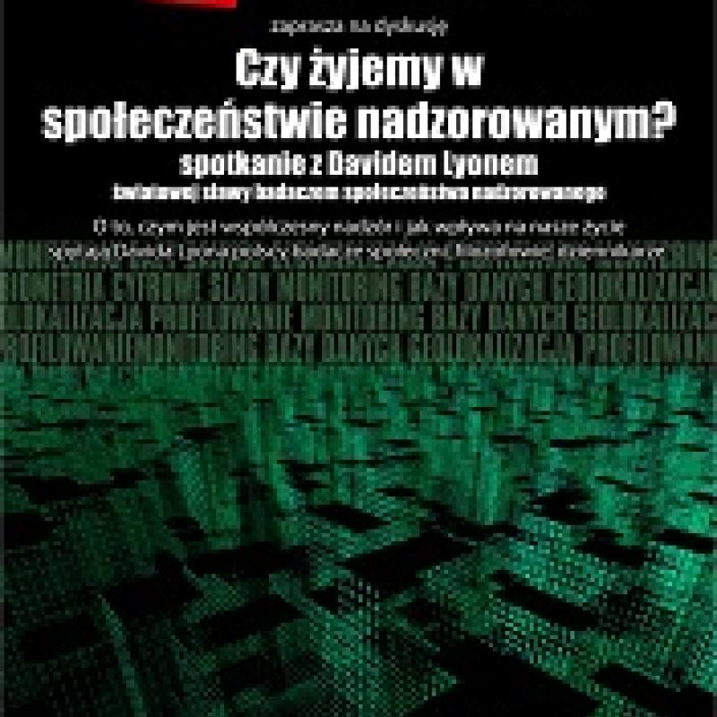 Artykuł David Lyon w Polsce! David Lyon jest profesorem socjologii oraz prawa na Uniwersytecie Queen's w Kanadzie. Obszar jego zainteresowań zawodowych stanowią nowe zjawiska społeczne zachodzące we współczesnym świecie. Przede wszystkim globalizacja, sekularyzacja oraz społeczeństwo nadzoru.Problemem społeczeństwa nadzoru (ang. surveillance society) Lyon zajmuje się od 20 lat. Jako Dyrektor Centrum Studiów nad Nadzorem wspólnie z międzynarodowym zespołem analizuje i bada ten problem na wielu płaszczyznach. Po raz pierwszy pojęcie „surveillance society” zostało użyte przez Gary’ego T. Marxa, w artykule z 1985 - "The Surveillance Society: the threat of 1984-style techniques" w The Futurist. 06.07.2011 Tekst