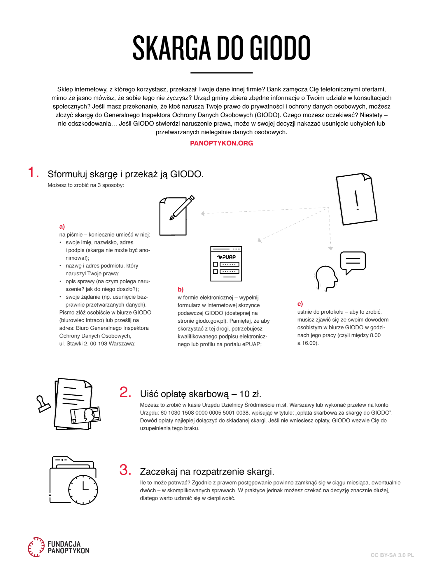 Artykuł 02.02.2017 1 min. czytania Tekst Image W zeszłym roku Unia Europejska przyjęła wielką reformę ochrony danych osobowych. Regulacja będzie bezpośrednio obowiązywała we wszystkich krajach członkowskich i wejdzie w życie w maju 2018 roku. Nowy akt pozostawia jednak państwom pewną swobodę w uregulowaniu konkretnych obszarów. Jednym z nich jest funkcjonowanie organu, który będzie odpowiedzialny za ochronę prywatności. Generalny Inspektor Ochrony Danych Osobowych (GIODO) zaproponował projekt przepisów, które mają tę sferę określić. W propozycji pojawiają się nowe zasady rozpatrywania skarg, nakładania kar i ich wysokości czy pomysł na rolę sądów. Pomysły GIODO wzbudziły pewne kontrowersje. Dotyczy to szczególnie długiego terminu na załatwienie sprawy obywatela przez urząd – minimum 6 miesięcy. To długi okres. Standardem w administracji publicznej – wyznaczonym m.in. przez Kodeks Postępowania Administracyjnego – jest 30 dni lub 2 miesiące w przypadku zawiłych spraw. Szczegółowy projekt nowej ustawy o urzędzie ds. ochrony danych osobowych ma zostać zaprezentowany przez Ministerstwo Cyfryzacji. W naszej najnowszej infografice tłumaczymy jak złożyć skargę do GIODO – w dzisiejszym stanie prawnym. Fundacja Panoptykon Autor Temat dane osobowe reforma ochrony danych Poprzedni Następny Newsletter Otrzymuj informacje o działalności Fundacji Twoje dane przetwarza Fundacja Panoptykon w celu promowania działalności statutowej, analizy skuteczności podejmowanych działań i ewentualnej personalizacji komunikacji. Możesz zrezygnować z subskrypcji listy i zażądać usunięcia swojego adresu e-mail. Więcej informacji o tym, jak przetwarzamy twoje dane i jakie jeszcze prawa ci przysługują, w Polityce prywatności. Zapisz się Zapisz się Akceptuję Regulamin usługi Leave this field blank Zobacz także Artykuł „Będzie na czas”, czyli rząd zwleka z wdrożeniem dyrektywy policyjnej Już tylko 68 dni zostało na wdrożenie unijnej dyrektywy policyjnej, która miała wzmocnić prawa obywatelek i obywateli wobec państwa. Do Fundacji Panoptykon już kilka miesięcy temu trafił nieoficjalny projekt ustawy wdrażającej dyrektywę, ale oficjalnie w resorcie spraw wewnętrznych „trwają prace… 27.02.2018 Tekst Podcast Wybory, których nie było. Rozmowa z Katarzyną Batko-Tołuć i mec. Witoldem Chomiczewskim Właśnie mija rok od przekazania Poczcie Polskiej danych 30 milionów Polek i Polaków w celu organizacji korespondencyjnych wyborów prezydenckich. Wyborów, które jak wiemy, odbyły się w innym terminie i w innym trybie niż zapowiadany. Działanie premiera, Poczty, Ministerstwa Cyfryzacji i samorządów,… 22.04.2021 Dźwięk Podcast (Nie)bezpieczne dane. Rozmowa z Piotrem Koniecznym Kto może czuć się bezpieczny w Internecie? Jak firmy dbają o dane swoich klientów? Komu zdarzają się wycieki i jak sobie z nimi radzić? – opowiadał Piotr Konieczny, założyciel portalu Niebezpiecznik.pl, szkoleniowiec i praktyk z dziedziny cyberbezpieczeństwa. 21.03.2019 Dźwięk