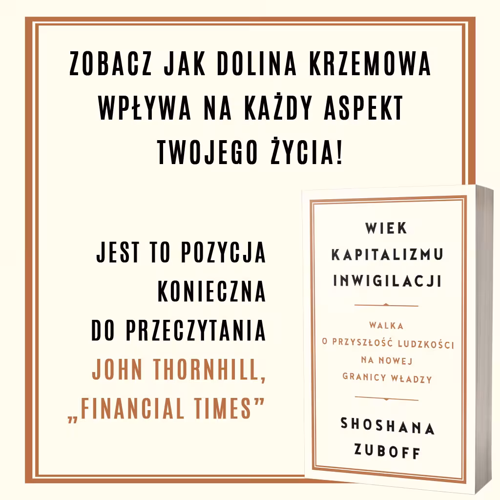 Artykuł 06.01.2021 4 min. czytania Tekst Image [Aktualizacja: Konkurs rozstrzygnięty, sprawdzajcie skrzynki mailowe. Dostaliśmy mnóstwo świetnie sformułowanych pytań. Mamy nadzieję, że już wkrótce choć część z nich uda nam się zadać autorce.] Co ma wspólnego kapitalizm z inwigilacją? Według Shoshany Zuboff, amerykańskiej psycholożki społecznej, bardzo dużo. W listopadzie na polski rynek trafiła w końcu jej książka Wiek kapitalizmu inwigilacji (Surveillance Capitalism). Dzięki uprzejmości Wydawnictwa Zysk i S-ka mamy dla Was jej 5 egzemplarzy. Aby ją zdobyć, wyślijcie pytanie, które chcielibyście zadać autorce na adres fundacja@panoptykon.org. Spośród autorów i autorek pytań rozlosujemy nagrody, a same pytania być może uda nam się zadać samej autorce w podcaście Panoptykon 4.0 (czekamy na potwierdzenie nagrania). Regulamin konkursu Opis książki ze strony wydawnictwa: Przełomowa analiza nowego porządku ekonomicznego, narzuconego przez cyfrową rewolucję, i jedna z najważniejszych książek XXI wieku o gospodarce i społeczeństwie Gra toczy się o wysoką stawkę. Dążenia potężnych korporacji do przewidywania i kontrolowania naszych zachowań są prawdziwym wyzwaniem dla ludzkości. Pasożytnicza logika ekonomiczna, w której wytwarzanie towarów i usług jest podporządkowane globalnej architekturze modyfikacji behawioralnych, może zmienić ludzką naturę w XXI wieku tak samo, jak przemysłowy kapitalizm zniekształcił naturalne środowisko w XIX i XX wieku. Autorka pokazuje, jak patronująca tym procesom Dolina Krzemowa wpływa na każdy sektor światowej gospodarki; jak prognozy naszych zachowań są kupowane i sprzedawane na rynkach prognoz behawioralnych, a bogactwo, wiedza i władza koncentrują się w jednym miejscu na niespotykaną dotąd skalę. Wskazuje, że prawdziwe zagrożenie dla naszego społeczeństwa płynie już nie ze strony totalitarnych państw, lecz ze strony globalnych korporacji, powszechnie inwigilujących nasze zachowania i kuszących obietnicami maksymalnego zysku kosztem demokracji, wolności i – ostatecznie – naszej przyszłości. Jedna z najlepszych książek roku wg „The Guardian” (wybrana przez Elif Shafak), „The New Yorker” (Jia Tolentino), Bloomberga (Ana Botin), „The Wall Street Journal” (Zadie Smith) oraz Baracka Obamy. Maria Wróblewska Autorka Temat Fundacja Panoptykon Poprzedni Następny Newsletter Otrzymuj informacje o działalności Fundacji Twoje dane przetwarza Fundacja Panoptykon w celu promowania działalności statutowej, analizy skuteczności podejmowanych działań i ewentualnej personalizacji komunikacji. Możesz zrezygnować z subskrypcji listy i zażądać usunięcia swojego adresu e-mail. Więcej informacji o tym, jak przetwarzamy twoje dane i jakie jeszcze prawa ci przysługują, w Polityce prywatności. Zapisz się Zapisz się Akceptuję Regulamin usługi Leave this field blank Zobacz także Artykuł Dołącz do zespołu eksperckiego Fundacji Panoptykon Chcesz z nami bronić wolności i prywatności? Dołącz do naszego zespołu! Szukamy prawnika/prawniczki do zespołu zajmującego się przeciwdziałaniem naruszeniom ze strony państwa i korporacji. 19.11.2025 Tekst Artykuł Sądny rok 2024. Podsumowanie roku działalności Panoptykonu Kto jeszcze pamięta, że w mijającym roku świętowaliśmy 15. urodziny? My prawie zdążyliśmy o tym zapomnieć, bo szybko musieliśmy wrócić do pracy. Co nas tak zajmowało w 2024 r.? 20.12.2024 Tekst Artykuł Dlaczego warto wspierać Panoptykon, czyli #GivingTuesdayPL Od tygodni radio rozbrzmiewa, a Internet świeci reklamami promocji z okazji Black Friday i Cyber Monday. Dokładamy do tego kolejną okazję: Giving Tuesday, czyli święto filantropii – dzień, kiedy zachęcamy was do wspierania darowiznami organizacji społecznych, z których działaniami się… 26.11.2021 Tekst